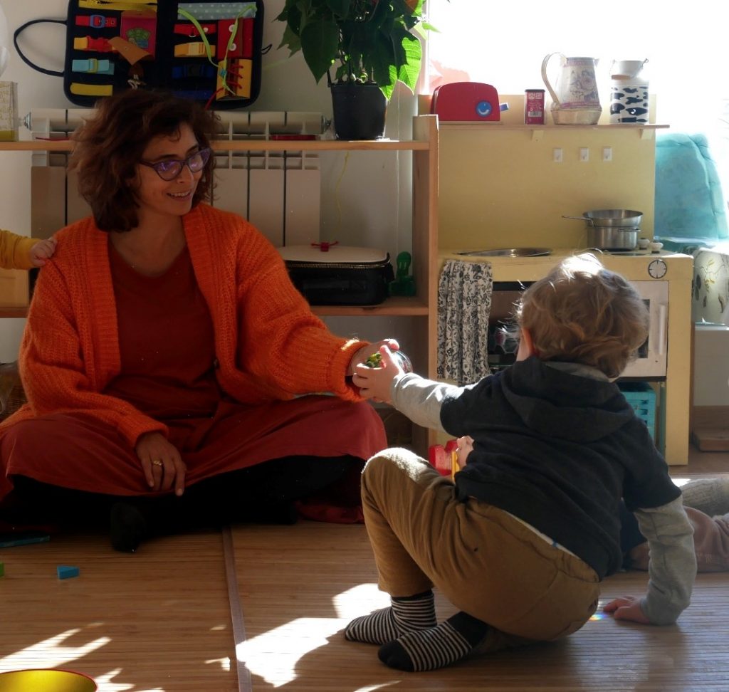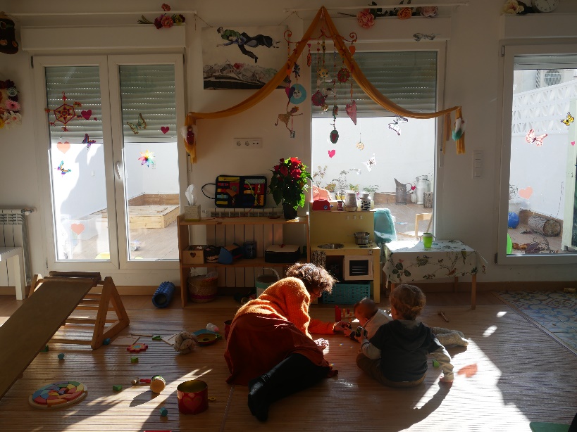 Es una educadora infantil profesional que acoge en su propio hogar a un máximo de 4 niñ@s entre 5 meses y 3 años. Haciendo un maternaje con un acompañamiento respetuoso e individualizado. Fomenta el Movimiento Libre, la autonomía, la autoestima y pone límites de forma respetuosa. Con titulación en educación infantil y pedagogías activas, experiencia, vocación y regulada por La Comunidad de Madrid. Pertenezco a la Red de madres de Día.